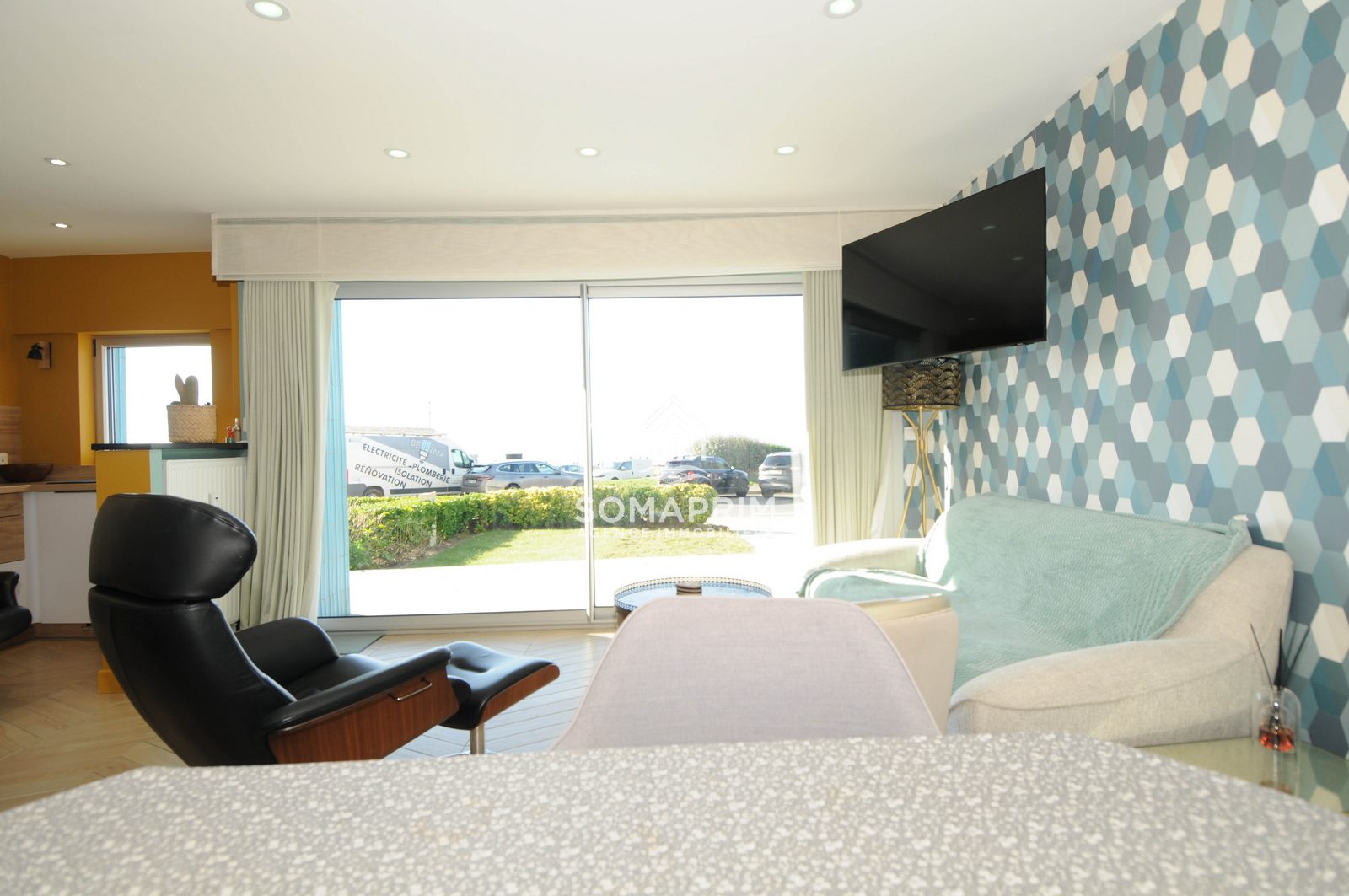 Séjour lumineux exposé ouest offrant une magnifique vue mer