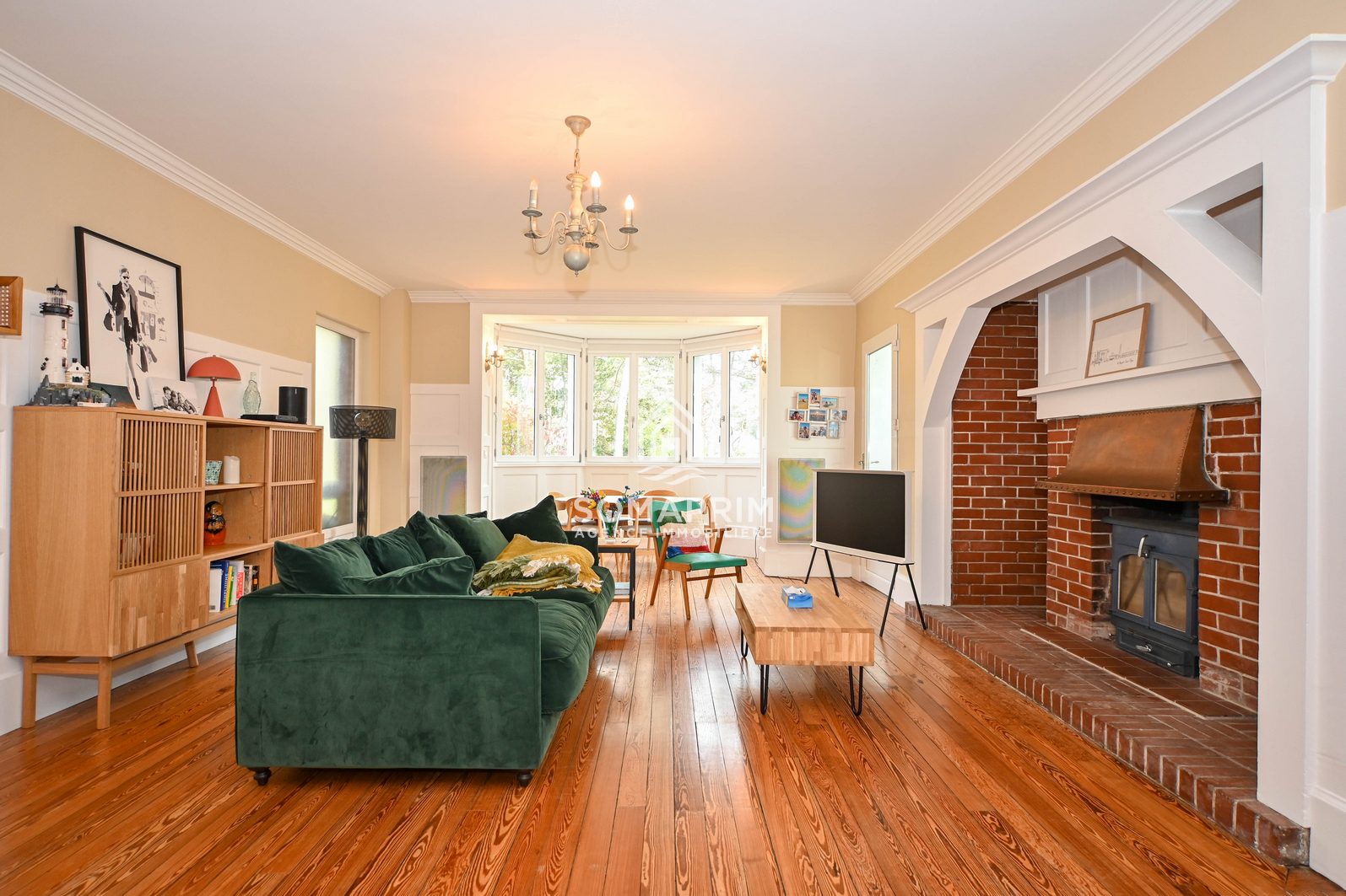 Séjour/salle à manger de 42 m² avec poele bois, jardin privatif de 65m² à l'Ouest
